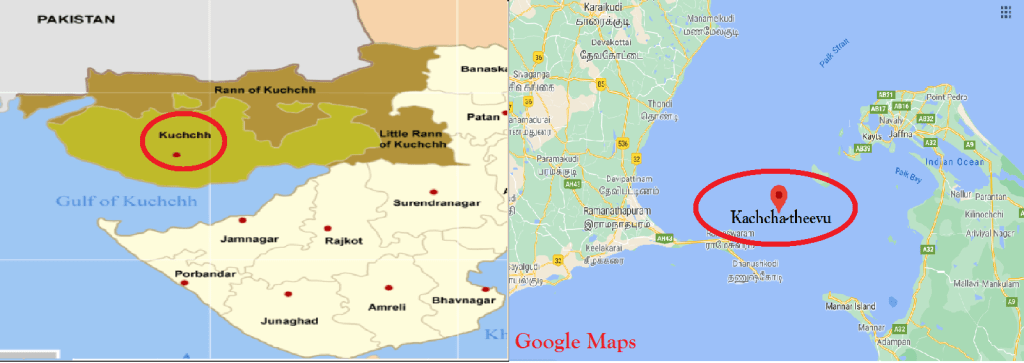 At the outset, the name ‘Kutch’ (also spelt as Kachchh/Kuchchh/Cutch) itself sounds akin to the name ‘Kachcha-theevu’. Since ‘theevu’ is the Tamil equivalent of the English word ‘island’, we infer ‘Kachcha’ as the actual name of the island. It is needless to say that the ‘Kachcha’ (island) of Sri Lanka sounds and spells similar to the ‘Kutch’/’Kachchh’ (district) of Gujarat, in India.