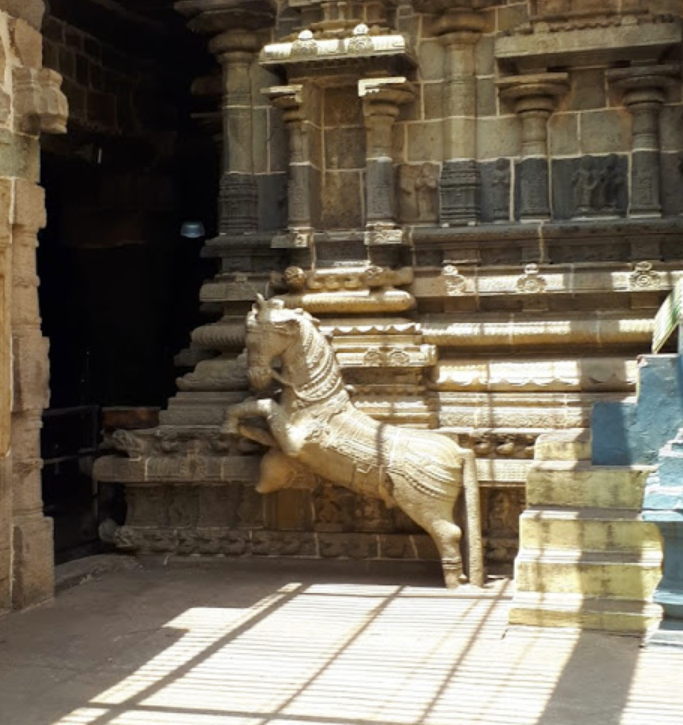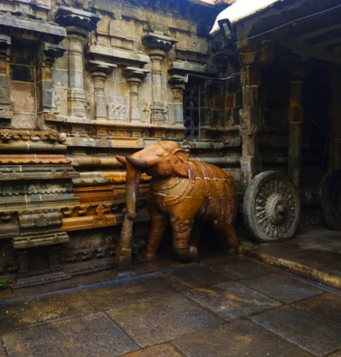 The central shrine of the temple is in the form of chariot drawn by horses and elephants with giant wheels. The temple is dedicated to indicate the descent of Lord Vishnu from heaven to marry Goddess Lakshmi, born as Komalavalli.