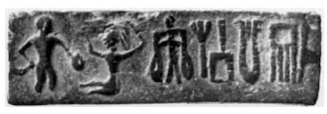 Later when I requested more details from Jonathan Mark Kenoyer (co-director of Harappa Archaeological Research Project) through email, he was kind enough to inform me that the concerned Harappan tablet is a narrative terracotta tablet/sealing. Kenoyer mentioned that the tablet is made from a mold (but the mold has not been found); he also specified that the tablet was not manufactured using a seal. Regarding the date of the tablet, Kenoyer remarked that based on their (i.e. Kenoyer and his colleagues) discovery of narrative tablets in late Period 3B and 3C (of Harappan chronology), it would date between 2450 BCE and 1900 BCE.