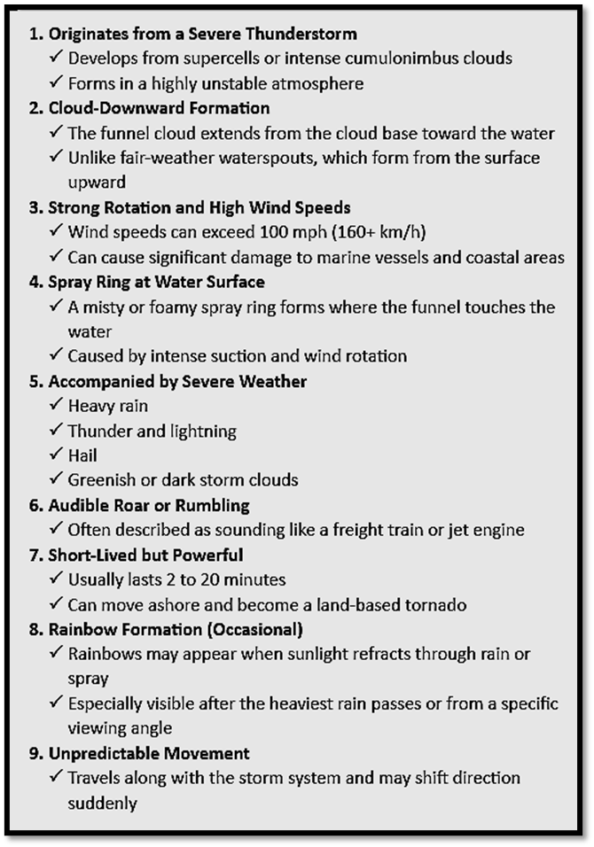 Upon reading these descriptions closely and repeatedly, I understood that Paranjothi Munivar was, in fact, describing a tornadic waterspout. So, I compare these particulars with the characteristic features of a tornadic waterspout presented below, as learnt from ChatGPT and Google Chrome.